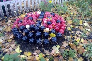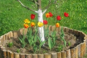 Начинающим дизайнерам лучше попробовать свои силы на простых в исполнении клумбах, которые и сами походят на гигантские цветы. Причем, при наличии бывшего в употреблении автомобильного диска, можно без труда соорудить и подставку для мини-клумбы.