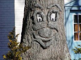 А может быть вы захотите придать каждому дереву оригинальность и наградить его уникальным «лицом»? Лучше всего, если для глаз, носа и рта будут использованы вырезанные из древесины или фанеры детали – так «лицо» будет выглядеть наиболее презентабельно.